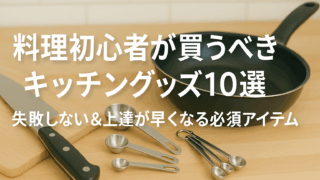 料理初心者におすすめのキッチングッズ10選を紹介!あると失敗しにくく、料理の上達が早くなる必須アイテムだけを厳選。調理効率UP&美味しく作れる便利ツールをプロ目線で解説します。